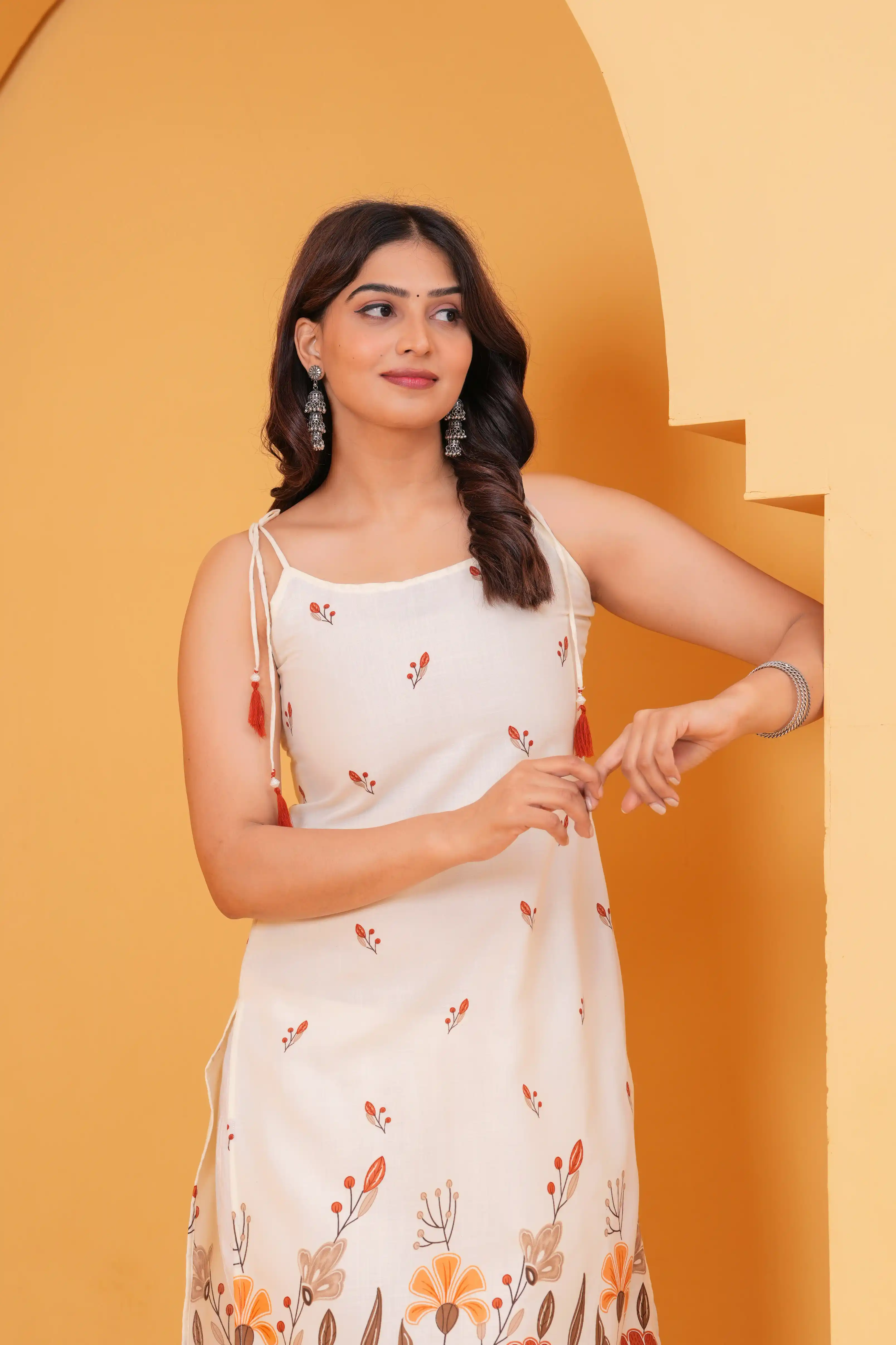 Vanilla Beige Floral Border Women’s Printed Straight Kurta with Pants (2-Piece Set)
