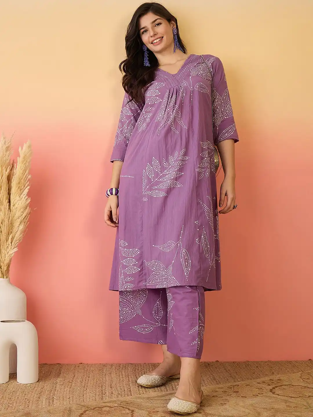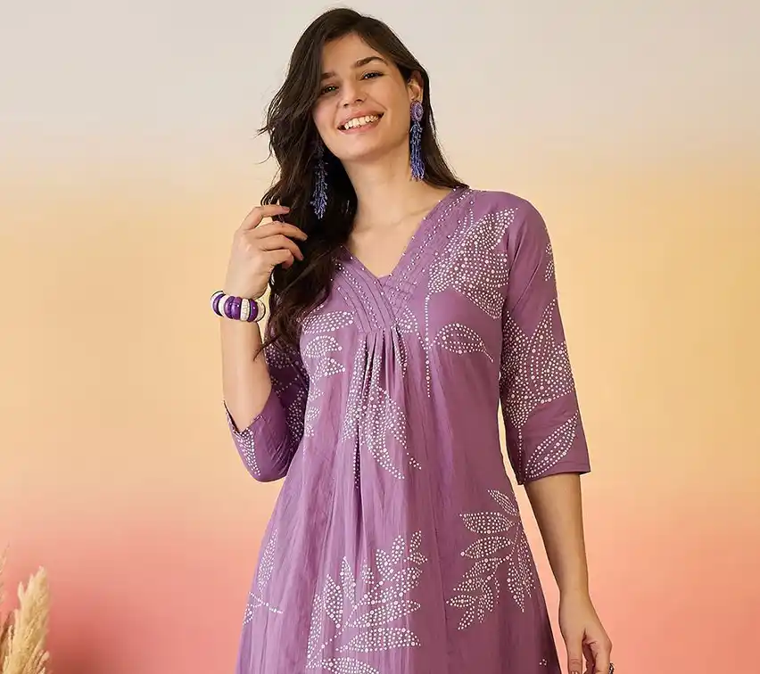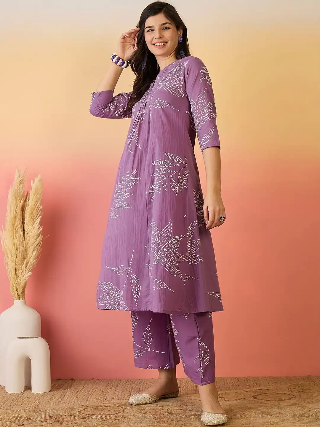 Lavender Plum Floral Butti Foil Work Women’s Printed Kurta with Straight Pant Set